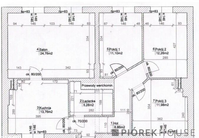 Mieszkanie o powierzchni 88 m2 składa się z: