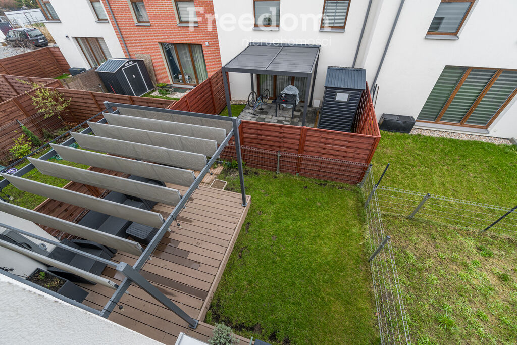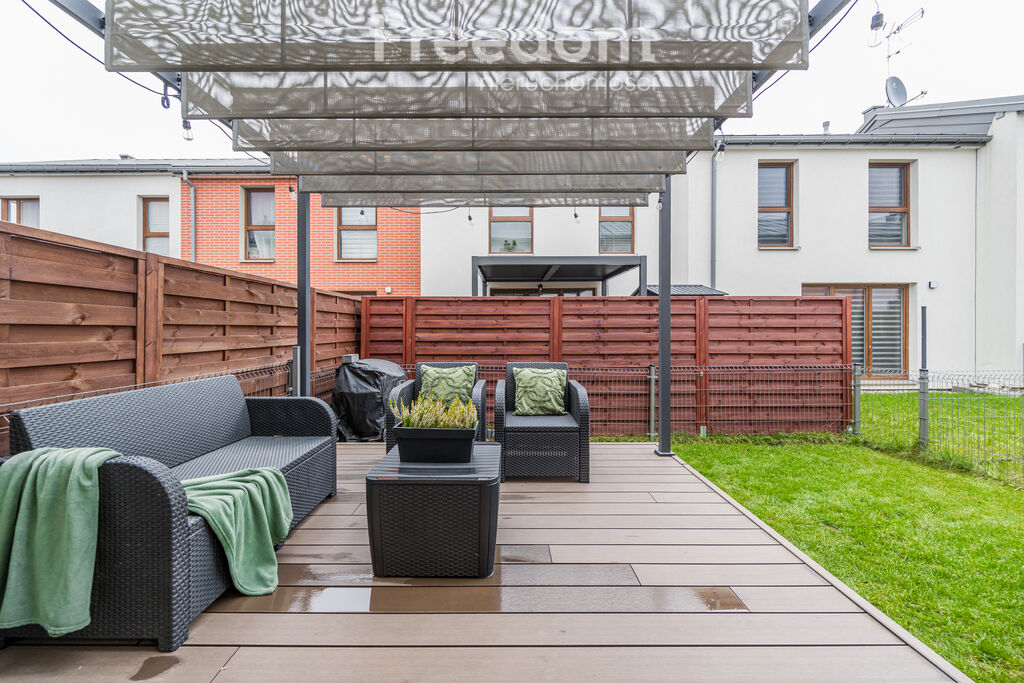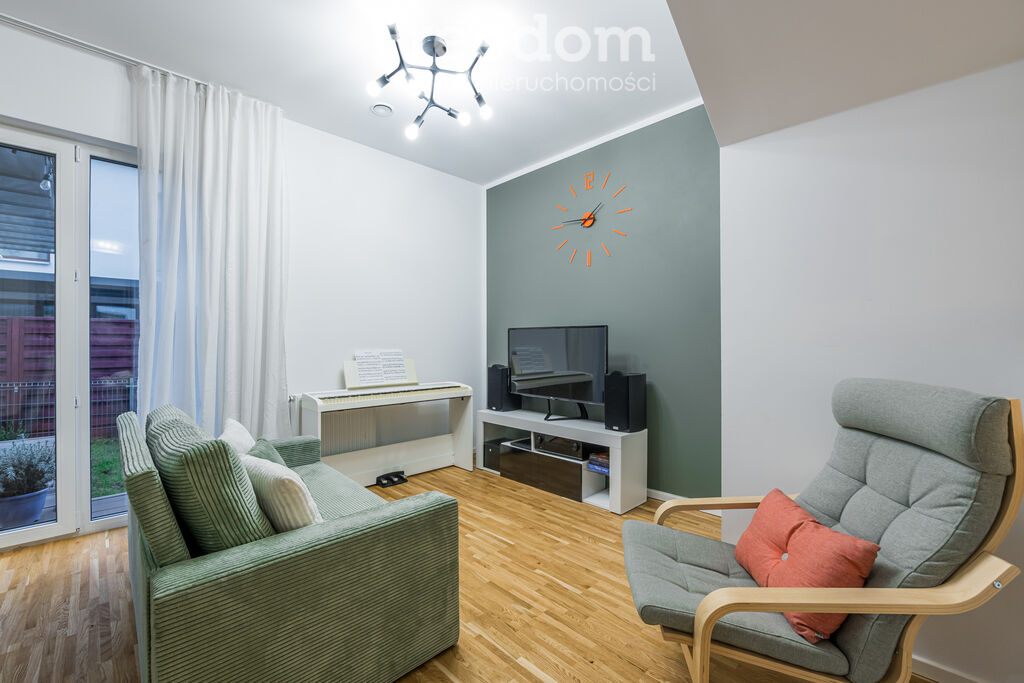 Z pokoju dziennego wychodzi się na ogród o powierzchni ok. 31 m2, na
