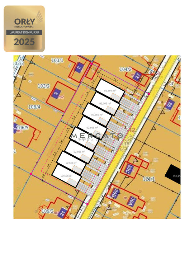 Na sprzedaż atrakcyjny, zwarty kompleks działek o łącznej powierzchni 2263 m², idealnie przygotowany pod realizację kameralnego osiedla mieszkaniowego. Teren objęty jest Miejscowym Planem Zagospodarowania Przestrzennego, a na podstawie parametrów MPZP oraz wykonanych analiz możliwe jest wybudowanie 8 nowoczesnych budynków mieszkalnych o powierzchni użytkowej ok. 92 m² każdy.