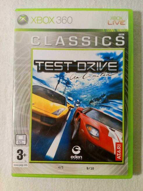 Gra Test Drive Unlimited na konsolę Xbox 360. Płyta posiada rysy widoczne na zdjęciu, ale instaluje się i gra działa ...