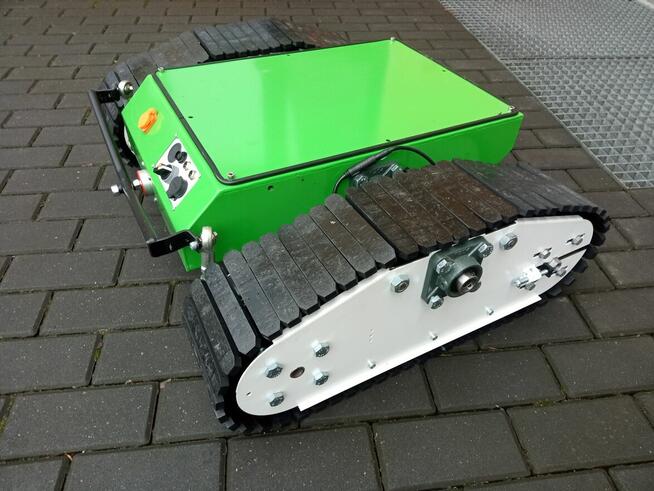 5Dron naziemny na gąsienicach, robot sterowany radiowo. Waga 65 kg, akumulator 42 V 30 Ah. Ładunek do transportu wynosi 70 ...