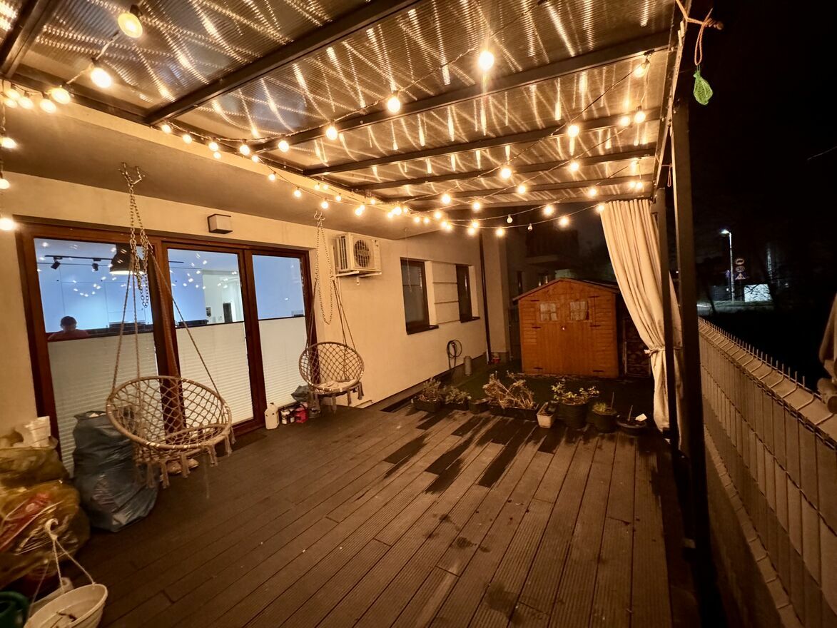 - podwórko 42m zabudowane tarasem oraz domkiem narzędziowym, w którym można magazynować rowery