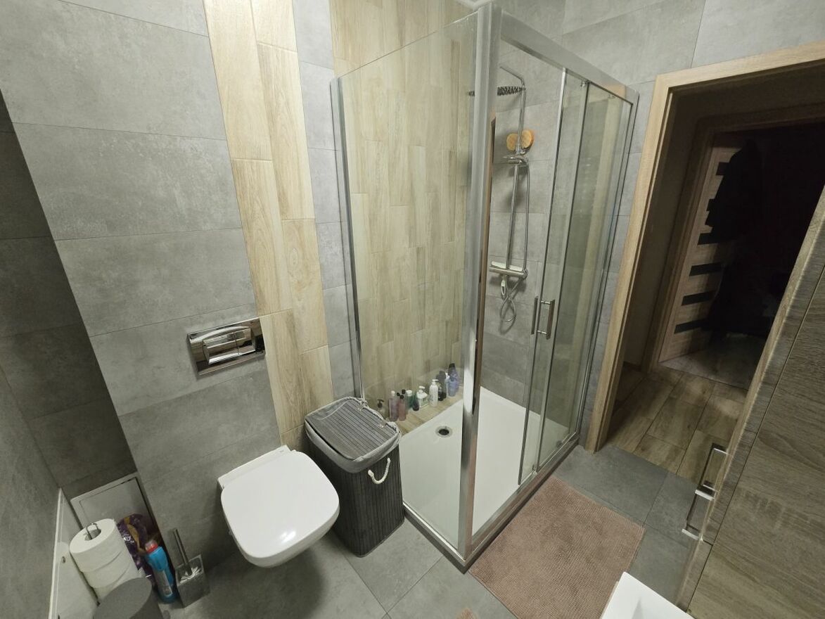 W skład nieruchomości wchodź lokal na piętrze pierwszym składający się z pokoju z aneksem kuchennym i balkonem, 2 sypialni, 2 łazienek, korytarza o łącznej powierzchni 74,89 metrów kwadratowych, oraz pomieszczeń przynależnych - odrębnego mieszkania na poddaszu o podobnym metrażu 74 metrów kwadratowych składającego się również z pokoju z aneksem kuchennym, 2 sypialni, 1 łazienki i 1x klatki schodowej.