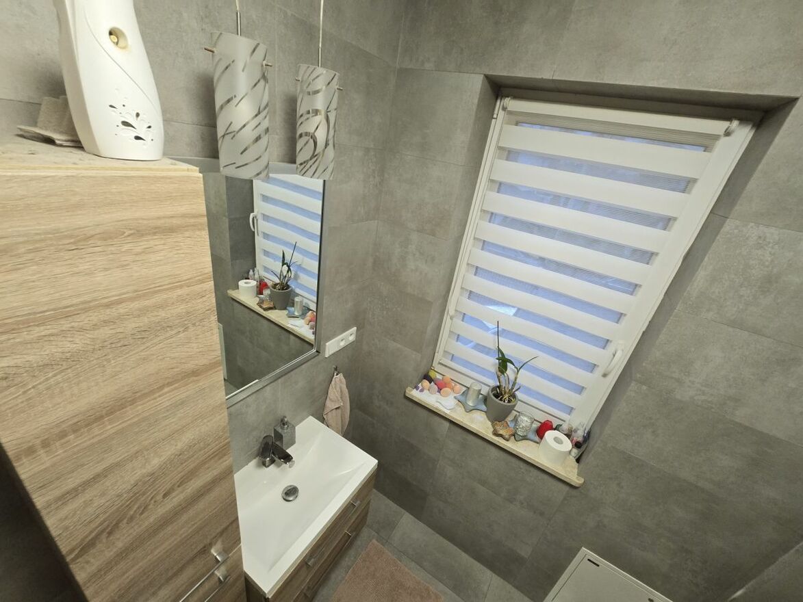 Do mieszkań przynależy garaż o pow. ok. 25m2 ? z wysokim sufitem. Obecny właściciel wykorzystał wysoką przestrzeń garażu na dodatkowy schowek na przechowywanie mniej potrzebnych rzeczy (usytuowany nad zaparkowanym samochodem w garażu). Poza garażem na podjeździe jest miejsce na 2 samochody.