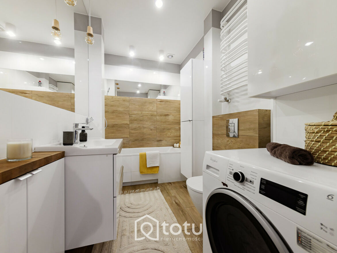 łazienka z wanną, WC, miejscem na pralkę,