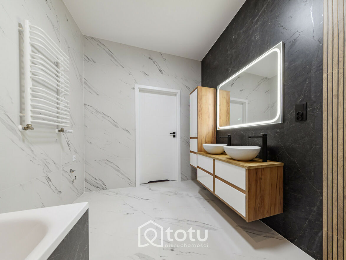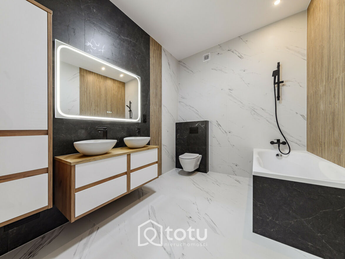 • przestronna łazienka z wanną, WC i dwiema umywalkami,