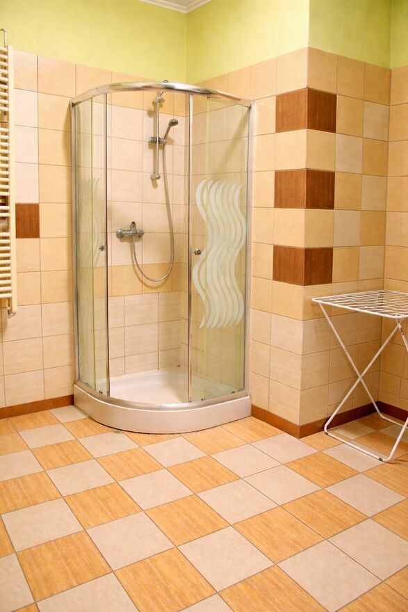 - łazienka z kabiną prysznicową oraz pralką,