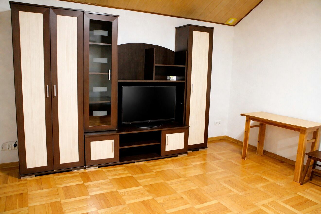 z miejscem do przechowywania, telewizor oraz stół.