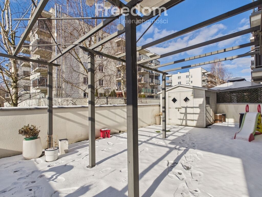 rowery, zabawki. Duża, zadaszona pergola.