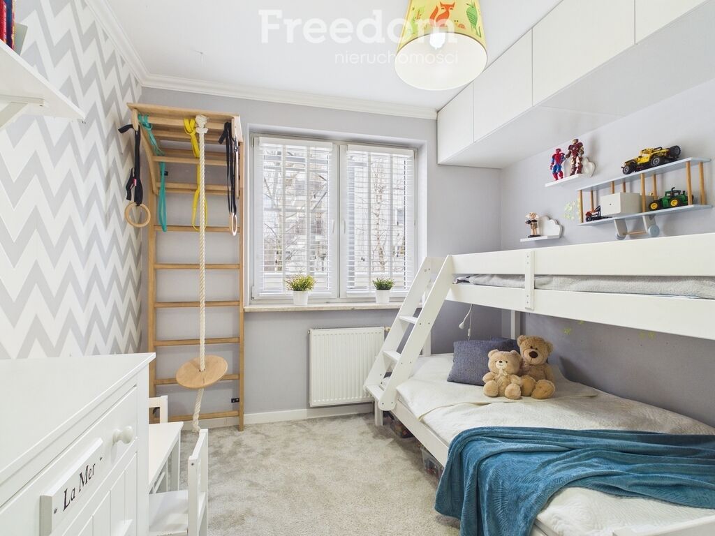 dla dzieci z łóżkiem piętrowym i drabinką gimnastyczną.