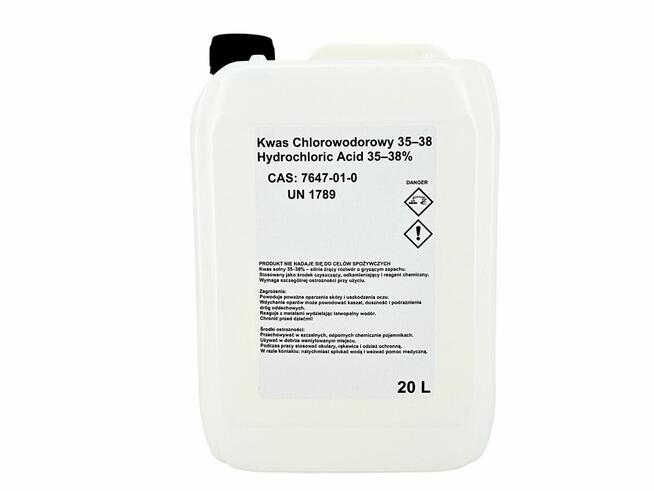 Kwas chlorowodorowy/HCl (CAS 7647-01-0) w stężeniu 37% to silnie żrący, bezbarwny lub lekko żółtawy roztwór wodny ...