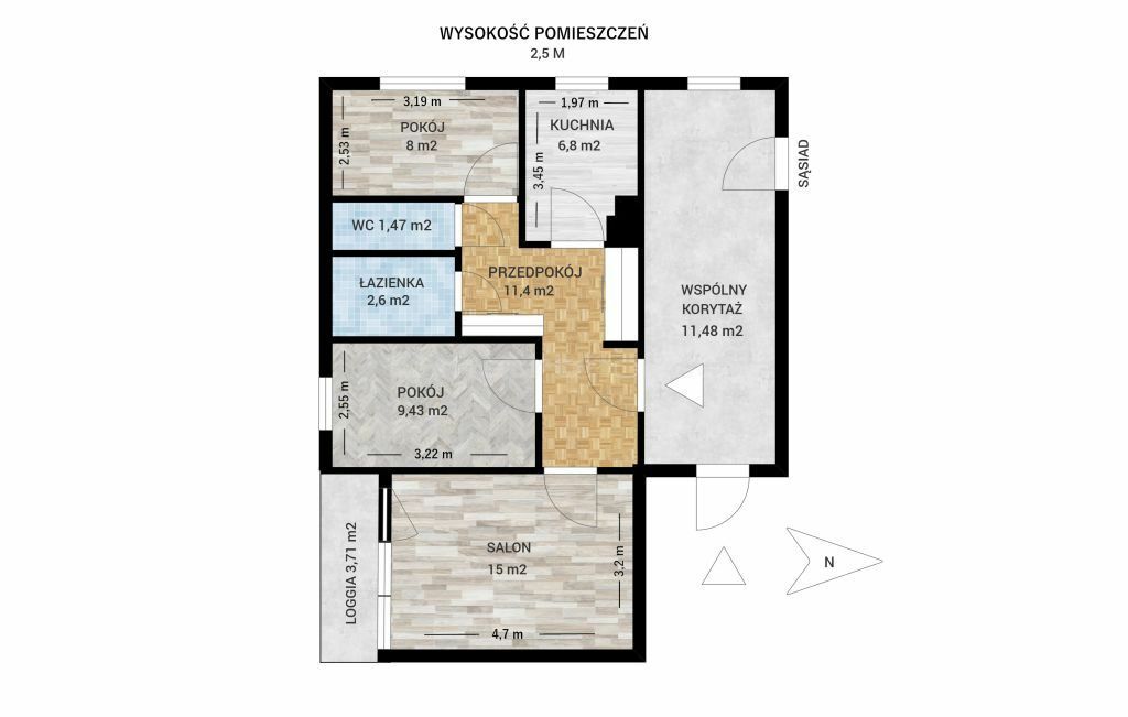 - Powierzchnia:71 m2