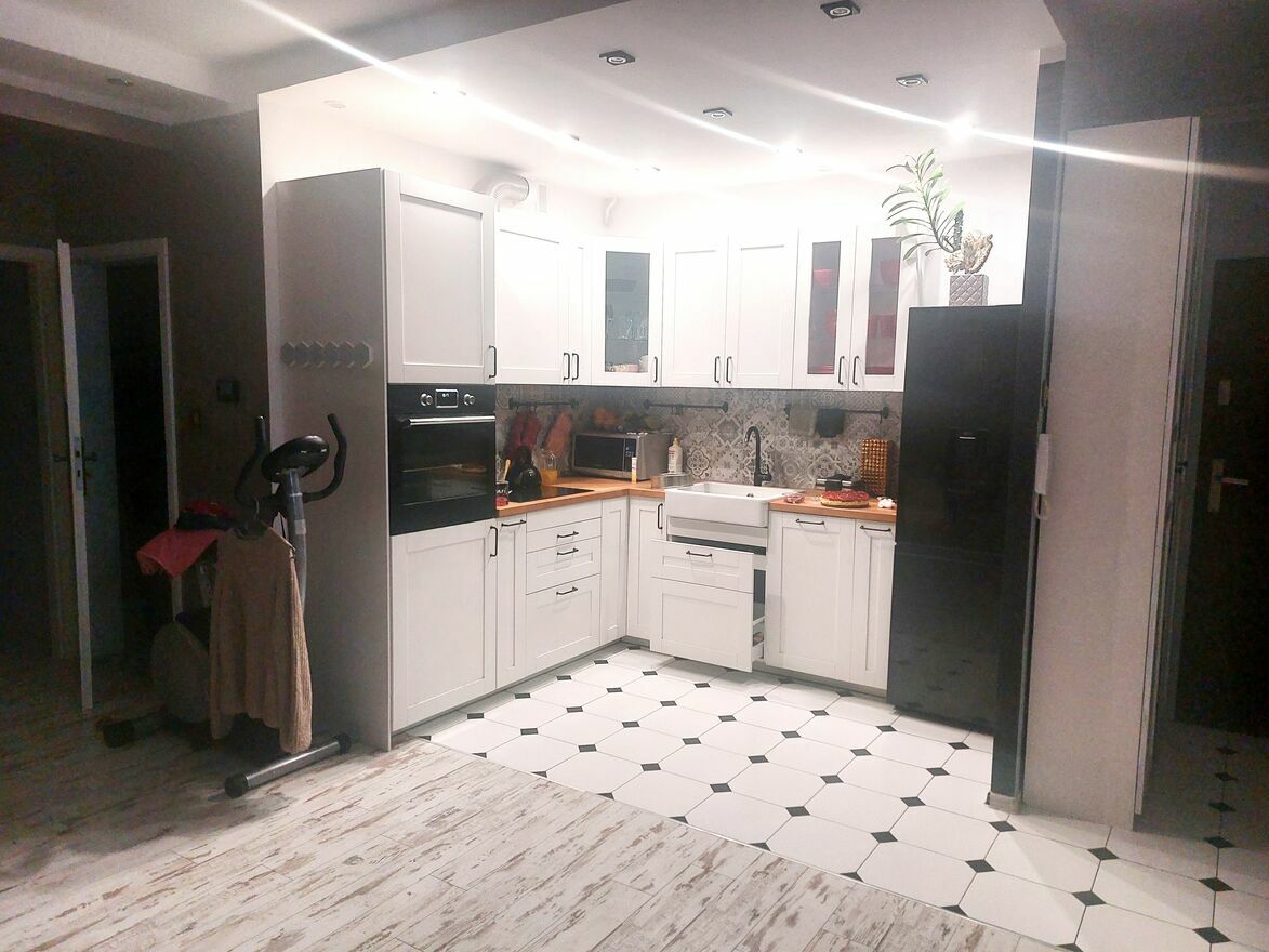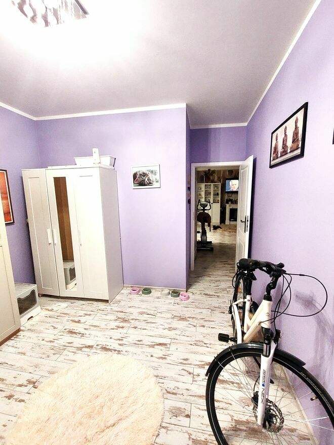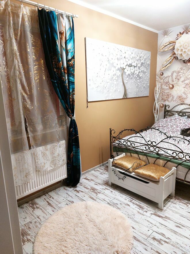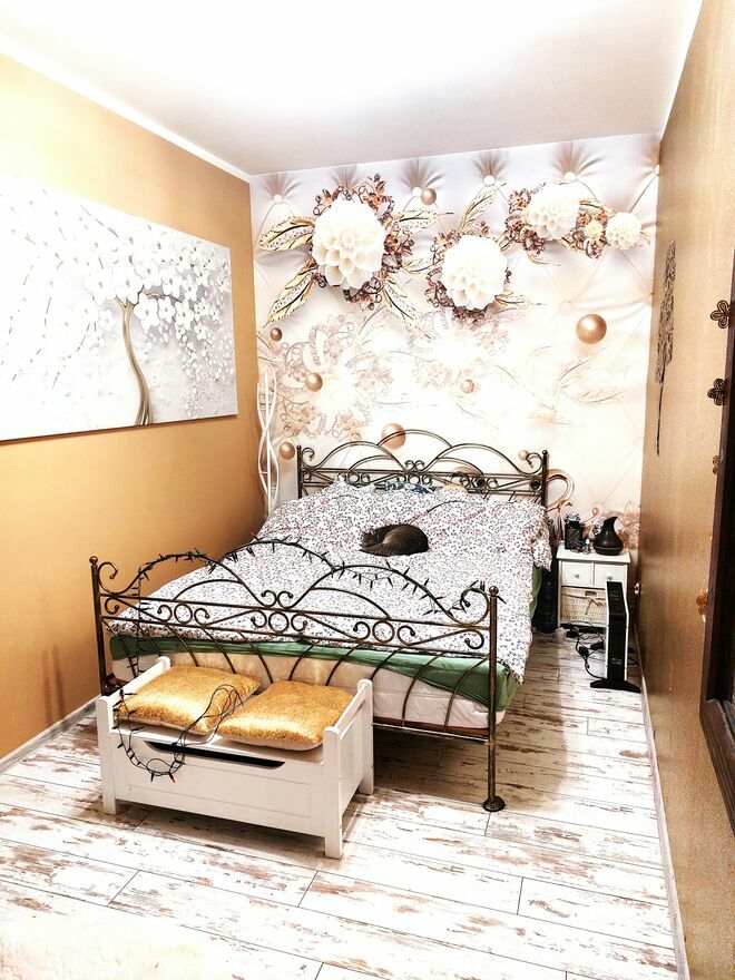 ZAMIENIĘ MIESZKANIE W MARKACH NA NIEWIELKI DOM WOLNOSTOJĄCY POD WARSZAWĄMieszkanie 3 pokojowe (dwa oddzielne pokoje i duży salon z aneksem kuchennym). W salonie profesjonalna fototapeta w kolorze złotym z ozdobami. Część ścian jest pomalowanych brokatową, dekoracyjną farbą (sam koszt pomalowania taką farbą wyniósł około 4 tys zł). Meble w kuchni gustowne, białe. Wbudowany piekarnik, zmywarka, płyta indukcyjna. W łazience znajduje się piec gazowy. Wszystkie gniazdka i włączniki światła wymienione na kolor złoty. W sypialni znajduje się kolejna fototapeta, która dodaje uroku. Jedna ściana oklejona tapetą w kolorze złotym. Wnęka na szafę.Świetny rozkład mieszkania do własnej aranżacji. W mieszkaniu znajduje się podłączony światłowód. Jest również balkon oraz garaż. Cena mieszkania szacowana jest na 750 tys. Kwestia garażu jet "do dogadania", czyli cena mieszkania 750 tys. wówczas garaż gratis. Kameralne, zamknięte osiedla, które znajduje się w Markach. W okolicy jest wszystko czego potrzeba: przedszkola, szkoły, markety, inne sklepy, centrum handlowe, banki, żabka około 400 m, sushi około 600m.